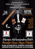 - Viernes 3 de noviembre (19:45 horas, Centro Cultural Jerome Mintz): Presentación de los libros ‘Caza. Desde el principio, desde los principios’ y ‘Cerrando Círculo’, de Antonio Gallardo Romero, miembro de la Federación Andaluza de Caza y Delegado Andaluz de Perdiz con Reclamo.