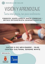 La Escuela de Salud Municipal continúa con su labor informativa y preventiva. La próxima charla, sobre la visión y el aprendizaje, tendrá lugar este jueves 9 de noviembre a las 19:00 horas en el Centro Cultural Jerome Mintz (Casa de la Cultura).